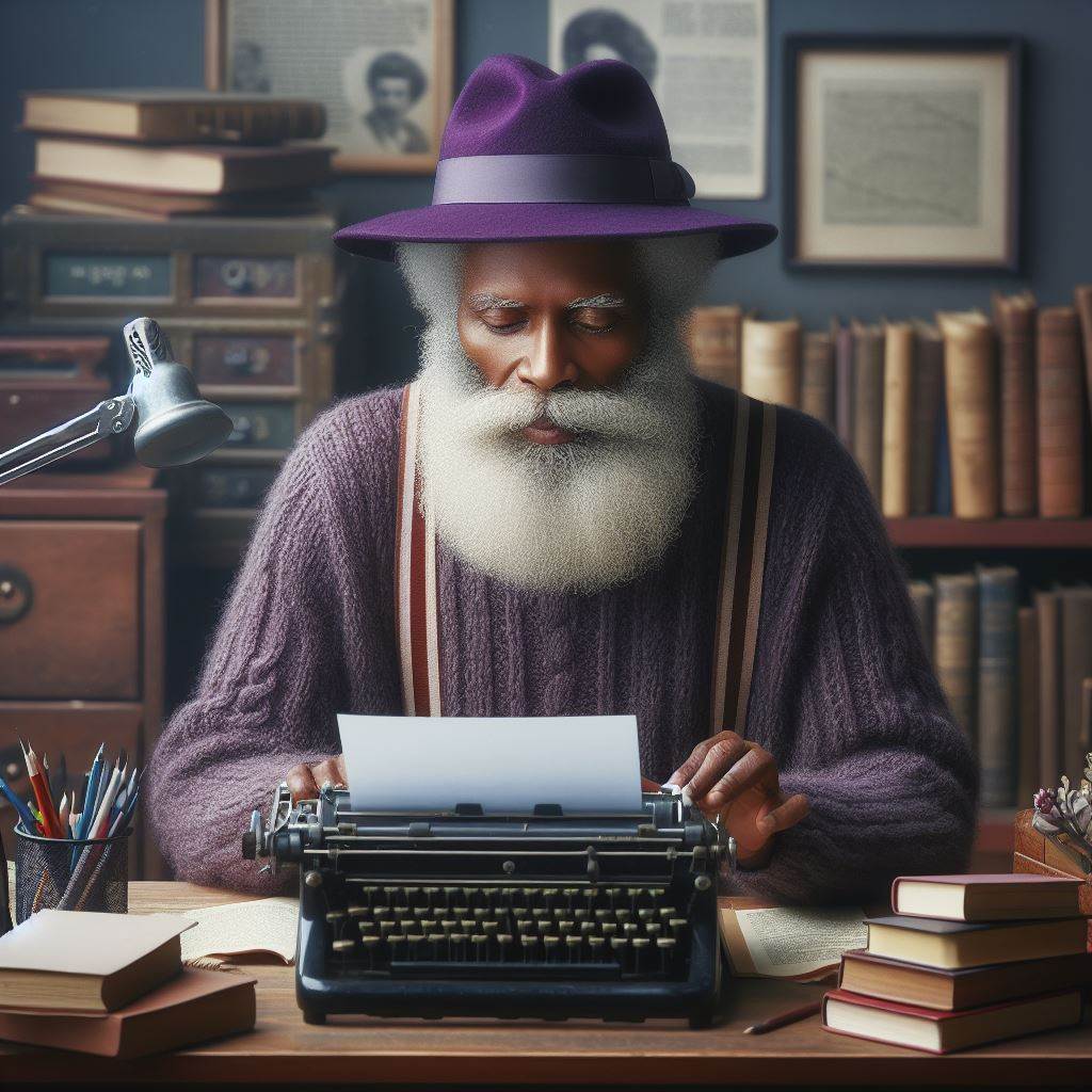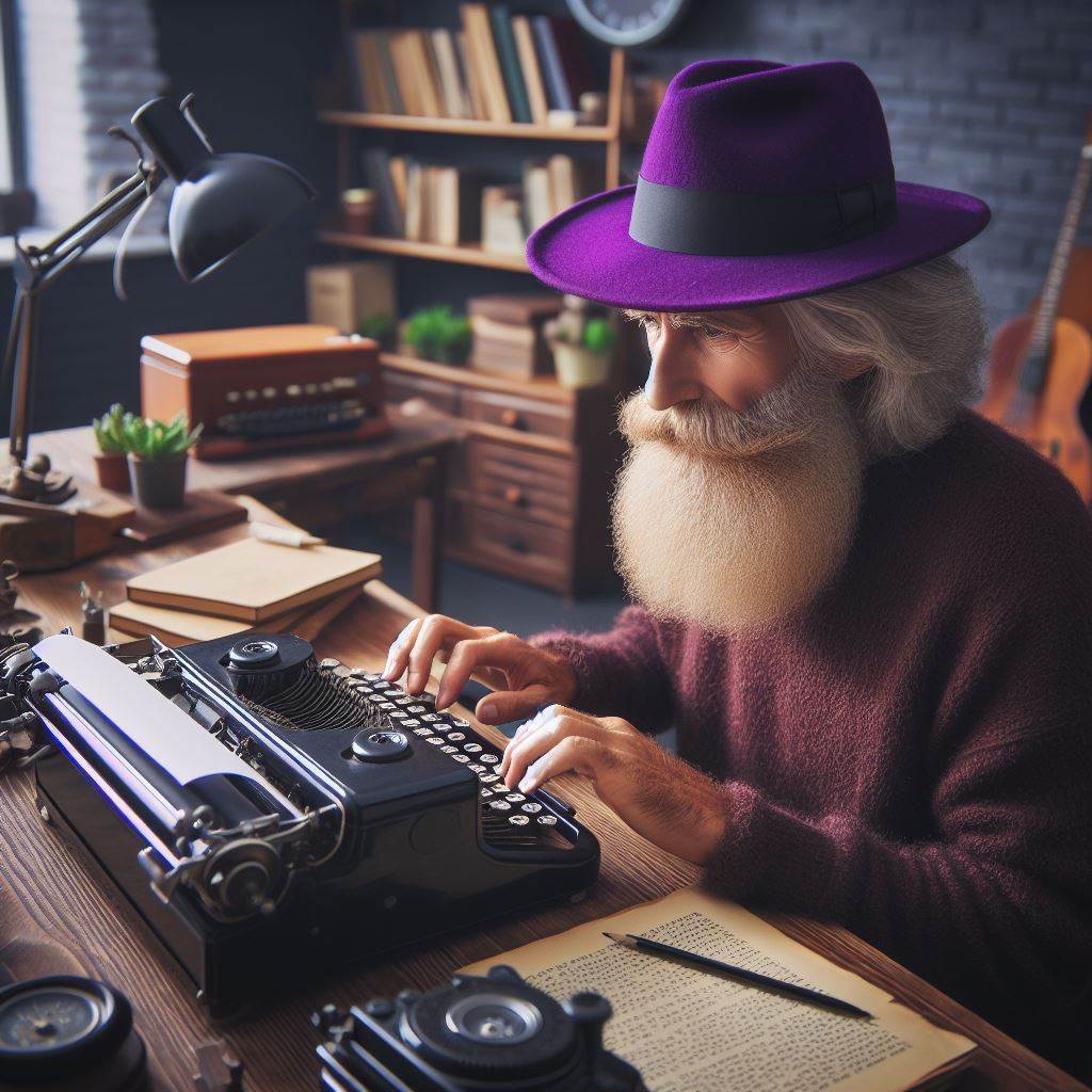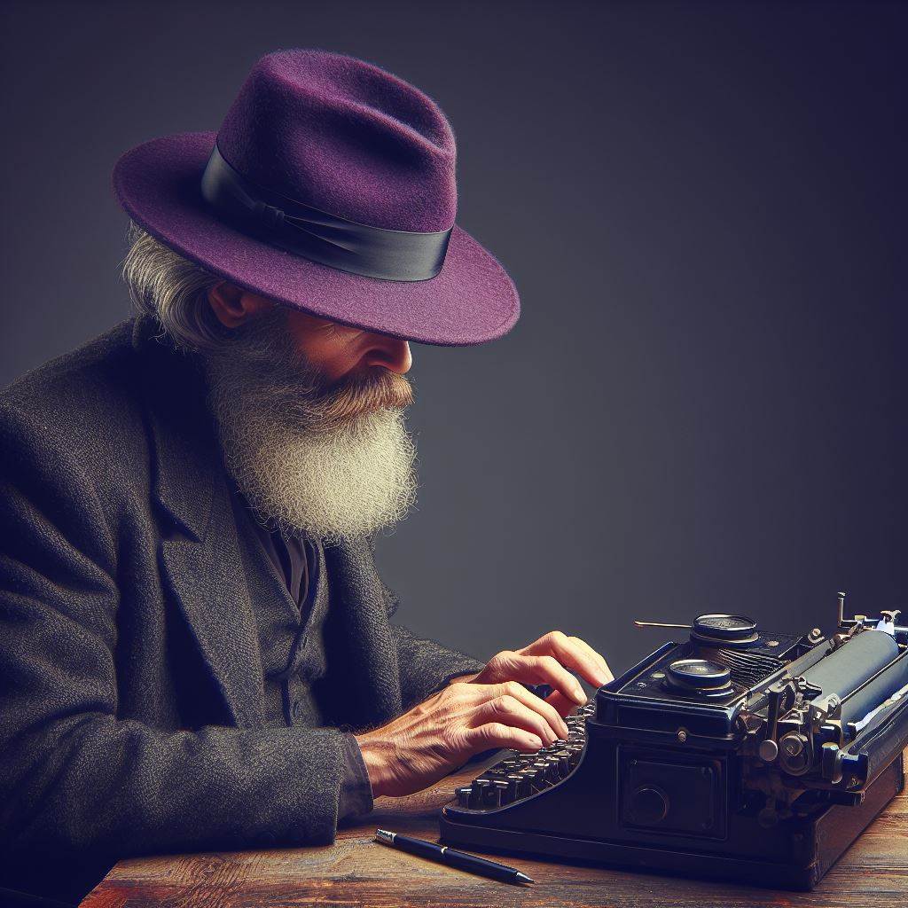 If case you are curious, yes, the purple hatted grey bearded images in this post were generated with AI, specifically through Bing's interface to DALL-E. The one directly above is my favorite. The grey beard appears to be modifying or fixing the typewriter rather than simply typing on it. A fitting analogy to the core essence of Linux itself.